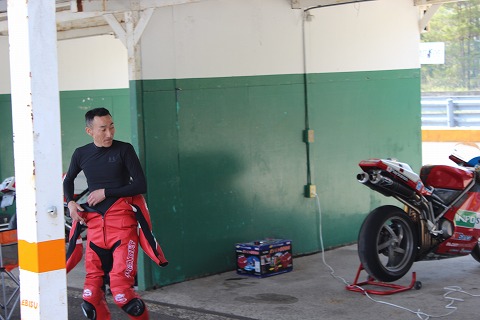 9:11 走行の準備 ノーマルの人はぼちぼち走行の準備に入ります。 自分はタイヤウォーマーをかけているので、もう少しタイヤを暖めてから走り出します。 蛯名さんも、ツナギに着替えて走行の準備。 今日は蛯名さんは、タイヤをピレリのディアブロ スパーコルサーのニュータイプV2(version2)を履いてきました。 ピレリのディアブロ スーパーコルサのversion2はMFJの公認タイヤにならないらしい。 その代わりに、メッツラーのRacetec Interact がこれから公認タイヤになるようです。 替わりに自分が今持っている、ユーズドのディアブロスーパーコルサは今年の11月で公認が切れてしまいます。 |