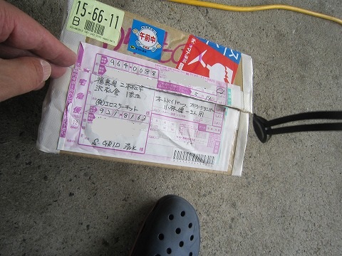 10:47 宅配便が届く ひと通り走行してみて、ピットイン。 休憩していると、サーキット事務所から電話があって、 『宅配便が届いてます!』 荷物は清水さんから。 |
