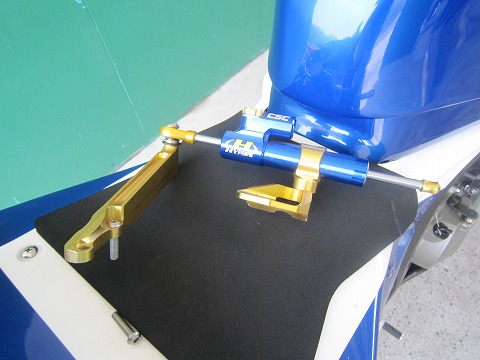 11:03 取付け完了 早速、取付け! このステアリングダンパーは、今までの様に三つ叉のメータの下辺りに付くタイプではなく、トップブリッジのところに付くタイプですね。 カラーリングが自分のバイクにピッタリ。 (^_^)v 調整は25クリックあって、今まで使っていたWPより効きは緩め、とりあえず10クリックくらいで。 |