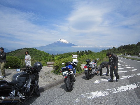 9:27 並べてみる 西湘パーキングで集合した後、西湘バイパスで箱根口インターまで西進し、国道1号線へ。 国道1号線で箱根の山を登り、箱根峠から芦ノ湖スカイラインへ。 途中の休憩所で富士山がきれいに見えたので、バイクを並べて写真を撮ってみる。 芦ノ湖スカイラインを走るのは、何年ぶりだろう? 久しぶりに走ったが、以前より路面の状態が良くないね。 以前はきれいなワインディングロードだったけど、今は結構うねってたりしてるね。 |