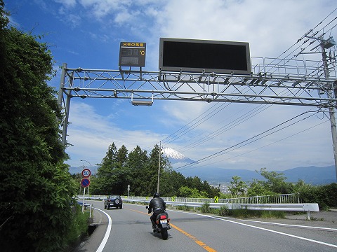10:36 県道23号御殿場富士公園線 国道138号線で御殿場まで進み、今度は県道23号御殿場富士公園線に入り西北西に進路を取り、陸上自衛隊富士演習場の脇を通過します。 富士山の麓を走る国道23号線は、片側1車線の県道で交通量も少なく、前半部分は写真にあるように直線を緩いカーブで結んだ、景色を楽しみながら走ることができます。 後半は標高を上げ、100km以上で走り抜けることができる高速コーナーが連続する、スリリングなワインディングロードへと変化していきます。 ※ 注)100km以上で走る抜けることができますが、実際に100km以上で走る訳ではありません。 |