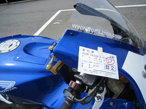 9:59 走行前 10:05からのB2の走行、6分前になりました。 ツナギを着て、装備を付け、ヘルメットを被って走行の準備をします。 で、走行2分前になってコースインゲートに向け出発! で、コースインゲート前で、 ”B2クラス 5分遅れ” 赤旗中断なので、タイムテーブルの遅れがコースインゲートまっで行かないと分からない! 致し方なく、出直し。(笑) |
