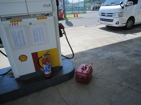 10:06 ガソリンを買う 駐車スペースの場所取りが終わったら、今日走る分のガソリンを購入。 走行3本あるので、携行缶満タンの20Lを購入。 観光地価格ならぬサーキット価格で1リットル=\191。 (O_O) ガソリンにこれだけお金を払えば、気合いも入るというものです。(笑) |
