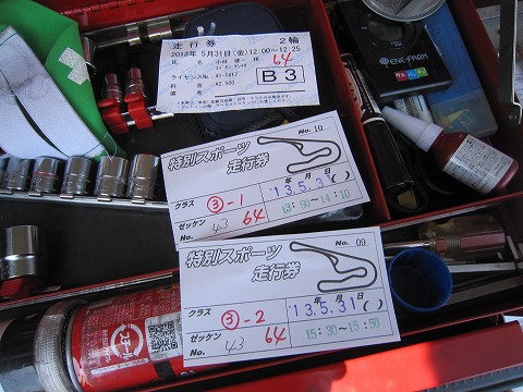 12:50 2本目の走行は 1本目の走行が終わり、2本目の走行準備が完了。 2本目の走行は13:50から。 そして、時間が微妙〜。 昼食を食べるには微妙〜。(笑) 走行まで、1時間。 3本目の走行も、インターバルが1時間ちょっとしかないので、昼食を食べるタイミングが・・・。 『いつ食べるの?』 『今でしょ!』 (^_^)v と言うことで、昼飯食べます。 |