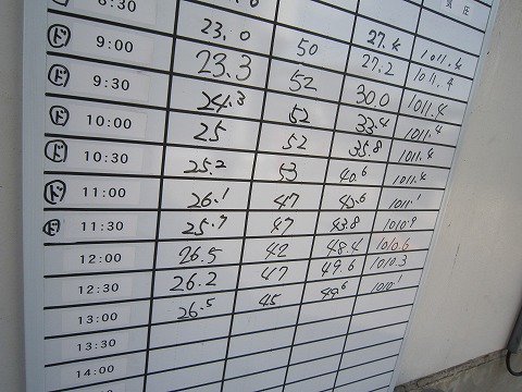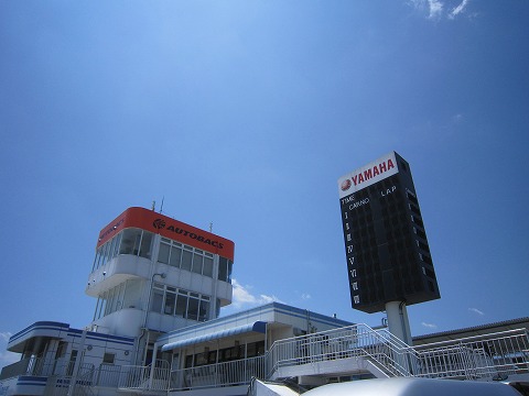 11:24 空模様 準備が一段落したところで、ピット裏へ偵察。 コントロールタワーを見上げる空は青く晴れ渡っています。 先週、観測史上3番目に早い梅雨入りをした関東地方ですが、梅雨入り宣言をしたとたんに雨が降らず。 気象庁さん、梅雨入り宣言、間違えましたね。(笑) |