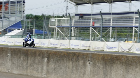 9:47 予選開始 オンタイムで、9:45からNMクラスの予選が始まりました。 予選は15分間。 最初の3周は、マシンチェックを。 エンジンの失火も怖いですが、オイルが漏れる方がもっと怖い。 ストレートでは、ジェネレーターカバーからオイルが漏れていないかを確認しつつ走行。 ポストからオイル旗が出ないか確認しながらの走行です。 エンジンの失火は今のところありません。 |