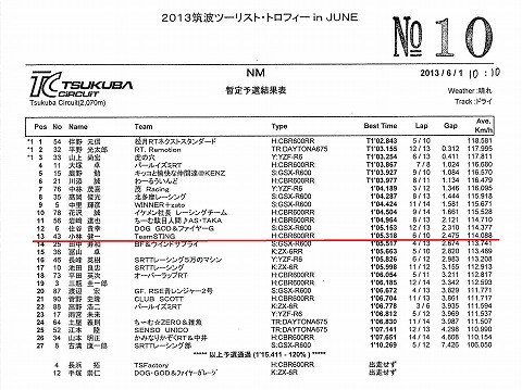 | 2013年6月1日(土) 筑波ツーリスト・トロフィ in JUNE(予選) | |||