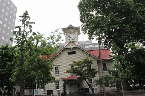7:04 時計台 大通り公園から、通り1本北側に歩くと、札幌市時計台です。 札幌市時計台は、その大きさがイメージしていたものより小さいことで有名? (笑) 札幌の時計台は、日本では観光名所として有名なので、自分たちが訪れれば、 『ほぅ! ここが札幌の時計台かぁ。』 と思いますが、 外国人の嫁からすれば、背景がないので、 『これがどうした?』 と興味の対象にはならないでしょうね。 |
