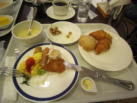 8:19 朝食 ホテルの部屋に戻ると、嫁さんが起きていました。 そして8時から、ツアーに含まれている唯一の食事、朝食を食べます。 朝食は、ブッフェスタイル。 和洋、結構な種類の料理が供されています。 北海道産のトウモロコシで作ったコーンスープが美味しかった。(^_^)v |