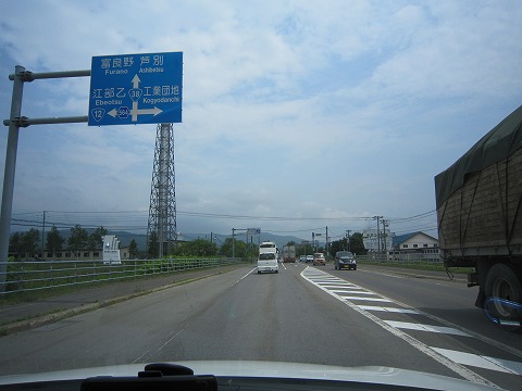11:37 国道38号線 滝川インターで道央自動車道を下り、国道38号線を富良野に向け南東にクルマを走らせます。 今回クルマで北海道を走って思うこと。 ”流れが遅い。” 市街地を離れた部分では制限速度50km、市街地では40km。 北海道の国道は、除雪した雪を道路脇に積んでおくための除雪帯があるので、道幅が広いです。 そのおかげもあって、制限速度が遅く感じます。 そして、流れているクルマの速度も、メータ読みで制限速度+10kmぐらい。 実際、クルマのメータは速度が5%くらい多めに出るので、ほぼ制限速度で走っていることになりますね。 以前と言っても、20年近く前のことですが、そのときはもっと速いスピードで流れていましたね。 たぶん80〜90kmくらいだったかな。(×0×) |