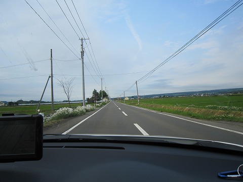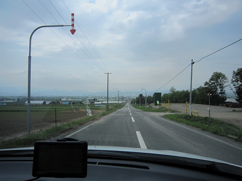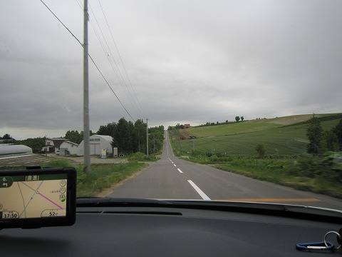 17:47 道はまっつぐ 5時半になって、フラヌイ温泉を出発して、今度は本当に宿に向かいます。 相変わらず、道は富良野盆地の丘陵地帯をまっつぐに走っています。 |