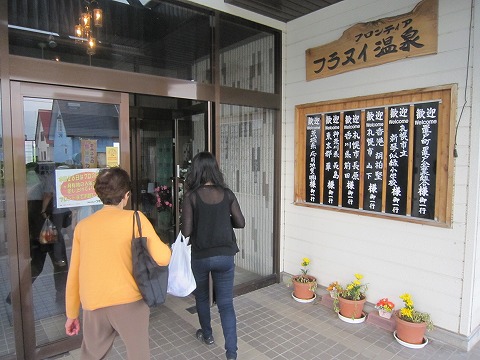 16:24 温泉へ 宿に入る前に、途中寄り道をして温泉に入ることにします。 訪れたのは、上富良野町にあるフラヌイ温泉。 宿泊施設ですが、立ち寄り温泉での利用もできます。 日帰り温泉はお一人様¥600。 シルバー割引がないか聞いてみたところ、『ない!』との回答。 そりゃそうだ。 基本訪問者の大部分がシルバー世代だからね。(笑) |