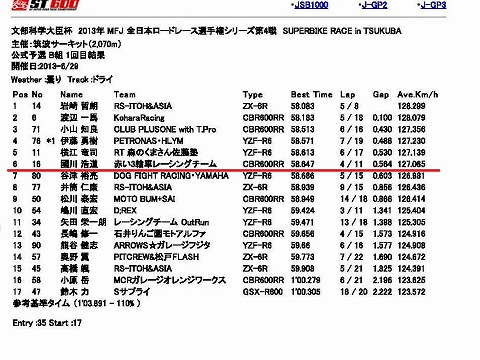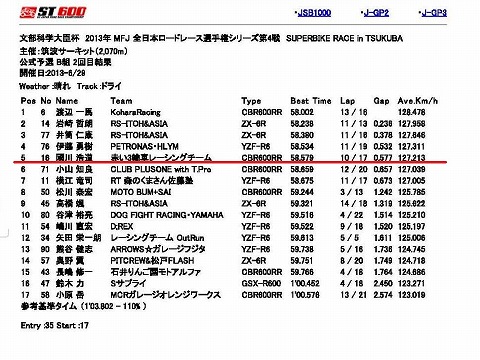Bグループ予選2回目 予選2回目は無事終了! 予選2回目は、ポジションを1つ上げて5番手タイム。 タイム58秒579とわずかに予選1回目を短縮しました。 |