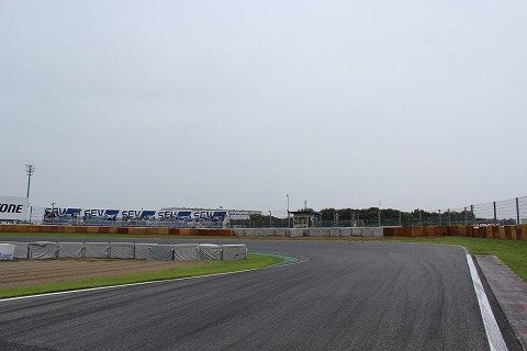 7:35 コースを横断 まだ徘徊。(笑) インフィールドからBパドックに行くゲートが開いていたので、コースを横断。 こうやって立ち止まって1ヘアピンの入り口側を見ると、すごいカントが付いているのがわかります。(写真でもわかりにくいですが) この間の筑波TTの決勝の時、あるラインを走ると、マシンがクルッと旋回してくれるような感じがしました。 こうして、立ち止まって見ると、『なるほど!』とうなづける。ような気がする。 |