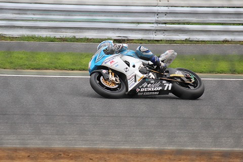9:07 JSBの ST600のウォーミングアップ走行の後、J-GP2。 その間に移動し、JSBのウォーミングアップ走行が始まりました。 目の前を通過していくのは#12 ヨシムラの津田拓也選手。 昨日の予選で、56秒244を叩き出し予選2番手に付けています。 津田選手、昨年はST600クラスに参戦。 2010年弟の津田一磨選手がアプリリアでJSBに参戦したときのメカが清水さんだったこともあり清水さんとは顔見知りで、ピットにちょくちょく顔を出していました。 そんなことも、あって応援したい選手の一人です。 |