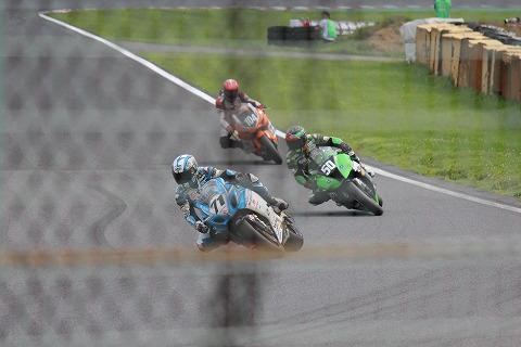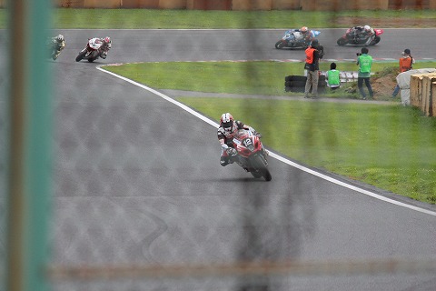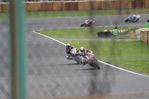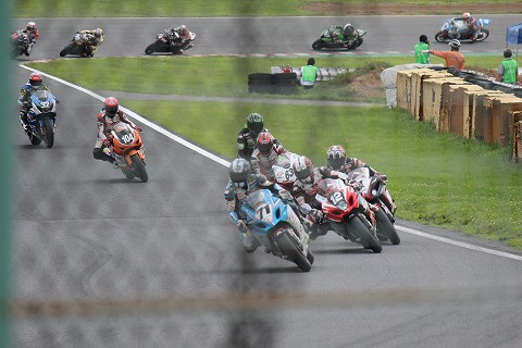 14:41 ホールショットは ホールショットを決め、1ヘアピンをトップで立ち上がってきたのは予選2番手の#12ヨシムラの津田選手。 去年はST600でレースをして、全日本初優勝をした験の良いサーキットです。 しかし、その直後に予選トップの#1ヤマハYSPレーシングの中須賀選手が付けます。 |