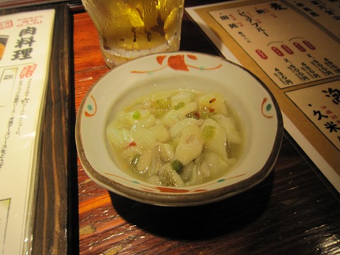 18:08 お通しを選ぶ ここ海ぼうず本店では、お通しは10種類くらいの中から、自分が好きなものを選ぶことができます。 お通しは、1品300円。 嫌ならパスすることもできます。 自分のチョイスは、タコわさ。 刻んだわさびがピリッとして美味しいですね。 話は飛びますが、静岡はわさびもそうですが、お茶が美味しいですね。 |