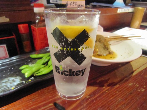 18:28 お次の飲物は 生ビールを2杯呑んだ後はお店お薦めのリッキー。 リッキーはこの夏、キリンビールが売り出しているジン・ウォッカベースのカクテル。 自分が頼んだレモンリッキーは、ウォッカ+ソーダにフレッシュレモンを入れたもの。 まあ、生レモンハイですな。(笑) |