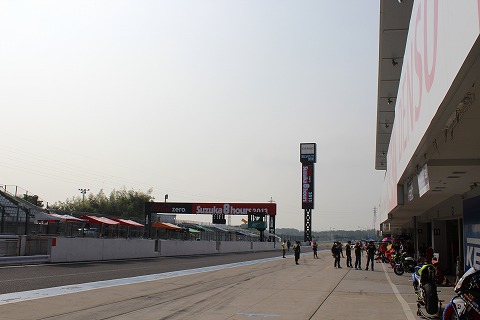 8:32 ピットロードオープン 8時30分になってピットロードがオープン。 ピットロードを出て、1周のサイティングラップを行い、グリッドに向かいます。 |
