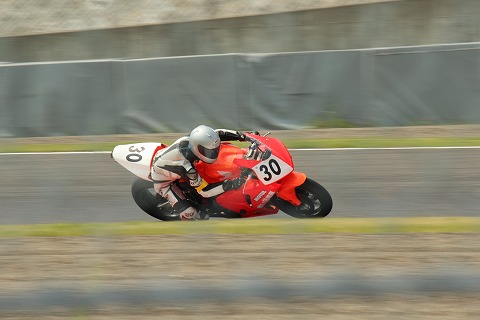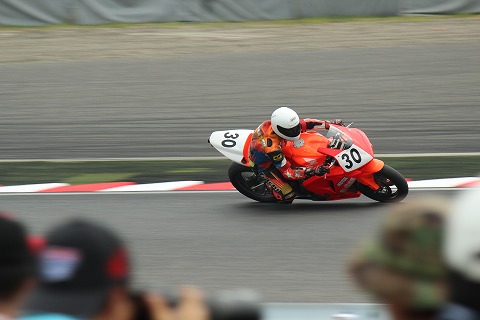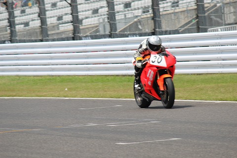 9:43 激感エリアへ スタート直後のゴタゴタが一段落したので、”激感エリア”の一つS字コーナーに移動して写真を撮ることにします。 今は第一ライダーの斉藤選手がライディング中。 4時間耐久は、レギュレーションで一人のライダーが連続して走行できるのは17周です。 1周ざっくりで2分半、(17周×2.5分=42.5分) なので、ぼちぼちライダー交代の時間ですね。 |