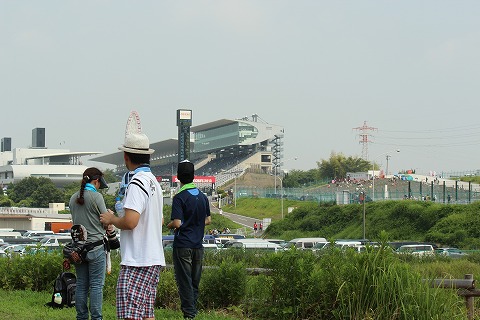 9:00 スタート 午前9時ジャスト、4時間耐久レースのスタートが切られました。 各チームは4時間先の午後1時のゴールを目指します。 ピットからメインストレートを見ていてもスタート直後の状況はピットウォールが邪魔で意外に見えません。 なので、スタートはピットの奥にあるディスプレイの場内放送で観戦。 これじゃ自宅に居て、Ustream 見ているのと代わらないね。(笑) |