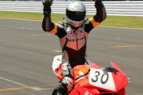 13:02 ガッツポーズで どんな形であれ、最後チェッカーが振られたときにコース上に留まっていました。 チェッカーを受け、ピット前でガッツポーズ! 『完走おめでとう! \(^O^)/』 来年もきっと走るんだろうね。 |