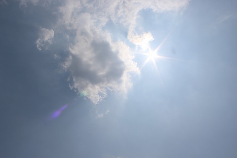 11:15 真夏の太陽 天頂を見上げれば、千切れ雲に真夏の太陽。 『暑い! (^o^;) 』 まさに8耐日和だ! |