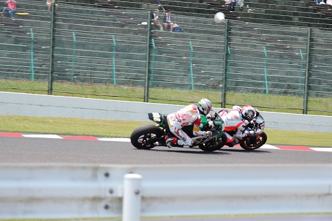 18:00 勢い余って そして、4位は去年の耐久レースのチャンピオンチーム#1 SUZUKIの耐久チーム SERT。 走っているのは、勢い余って飛び出した1コーナー立ち上がりのランオフエリア。(笑) まあ、ランオフエリアがあることを見越してギリギリの突っ込みをするんでしょうけど、自分がやっちゃったら口から心臓が飛び出ること間違いないね。 |