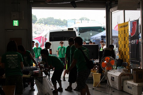 19:47 ピットに戻って パレードランを終えて、大木選手がピットに戻ってきました。 大木選手はピットクルー一人一人と全員にハイタッチ! |