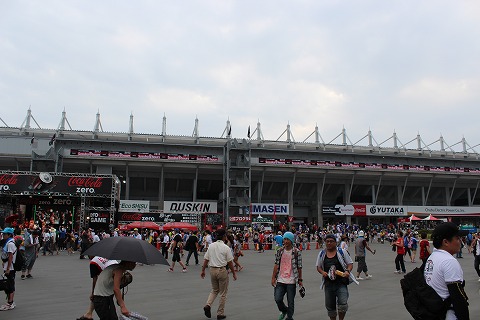 16:58 S字に? マシンを修復、ピットアウトした後、しばらくピットでウロウロ。 その後、S字の外側から写真を撮ろうと、メインスタンド側までやってきました。 けど、『S字遠すぎ!』 (>_<) 途中でめげて、パドックに戻ることにします。 |