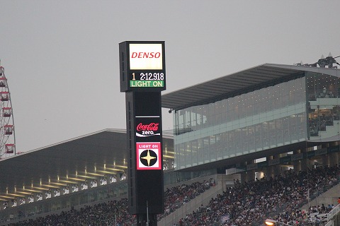 18:22 LIGHT ON! カメラでは分かりませんが、辺りは暗くなってきました。 18:20を過ぎ、LIGHT ON のサインが出されました。 ここで全車、ライトを点灯します。 |