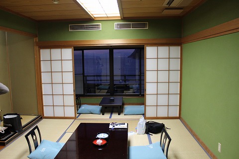 16:57 窓の外は 窓の外は駿河湾。 ホテルの前は、清水行きの駿河湾フェリー埠頭になっています。 フェリーは通常日に4便、静岡市の清水港と土肥を1時間ほどで結んでいます。 夏場の渋滞を考えると、静岡市方面から来るには至便だと思います。 デジカメの補正性能が良くて日中の様に写っていますが、今さっき日が暮れて外は薄暮の中、実際はかなり暗いです。 それでは、夕食前にひとっ風呂浴びてくることにします。 |