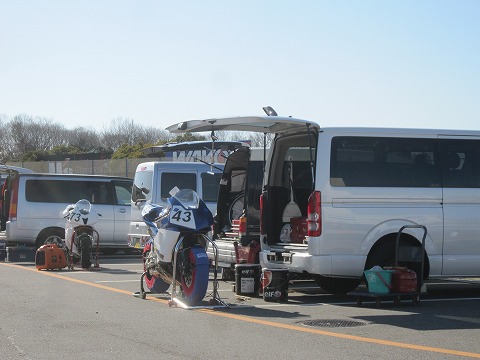 8:34 筑波サーキットに到着 自宅から2時間ちょっと、筑波サーキットに到着しました。 走行が11:05からなので、準備にちょうどいい時間ですね。 今日は動作確認のための走行なので1本だけ当月予約枠で予約。 普段であれば週末や休日の練習枠は前月予約で一杯ですが、流石にこの寒さなので走行枠に余裕があって、当月予約でも2本以上予約が出来ましたね。 |