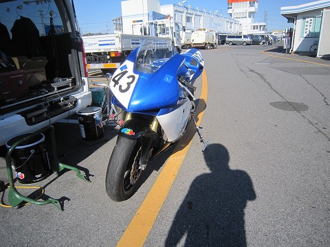 11:26 走行終了 B2枠の走行が終わってパドックに戻ってきました。 タイヤのグリップ感より先に、サスが全然動いてなくて、メチャクチャ怖かった。(>_<) で、一応走行終了だけど。 今度はバックストレッチの後半4→5速にシフトアップするところでギヤーが抜ける症状が何回か発生。 オイルがかなり使ったので、交換しなかったのが悪かったかな。 なんだかんだで、なかなかきれいに走ってくれないね。 |