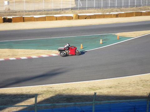 13:34 1ヘアピンで エビナさんがコースアウトしたら、1ヘアピンに移動。 写真を何枚か撮ってみました。 今日はライテックの店長も来ていて、お客さんの走行を隣で撮影。 じっと立って撮影するのは寒すぎだ。 走っているより寒く感じる。(>_<) |