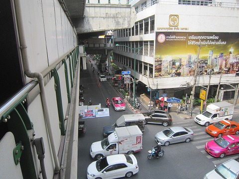 11:35 歩いて 嫁さん宅を出て、BTS(バンコク中心部を走る高架鉄道)のチットロム駅へ。 チットロムからはBTSの階下にある歩道橋をサイアム駅に向け歩きます。 この時期のバンコクは暑いですが、日本の真夏ほどではありません。 バンコクはおよそ北緯13°に位置し、北回帰線はおおよそ北緯23°なので、を太陽が通る時期があります。 それが4月になるので、一番暑いです。 それもあってか、水掛祭りは4月にあります。 |