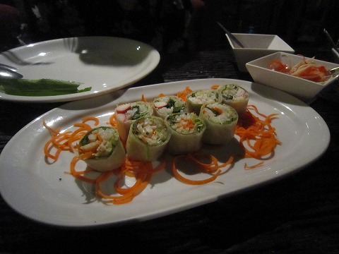 21:06 生春巻き まず運ばれてきたのは”生春巻き”。 春巻きの皮が乾き気味でイマイチ。 って思って前回訪れたときのレポを読んでも同じことが書いてあった。 学習能力なし。 レポを書いている意味がないよね。 |