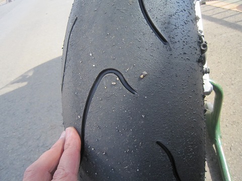 8:52 インターバル 1本目の走行が終わりました。 タイヤに貼ってあるステッカーを剥がさなかったんだけど、20分の走行が終わってもまだ残ってる。(笑) 他のメーカーのタイヤはすぐに剥がれたんだけど、Metzelerは剥がれにくいのか、次回からは剥がしてから走ることにしよう。 走行後のエアー圧はフロントが180Nに下がっていて、リヤは200Nのままでした。 フロントはピットインラップの間に冷えて下がっちゃうのもあると思うけど。 ちなみに、ウォーマーにかける前に、タイヤの表面をブレーキクリーナーで拭くの忘れてた。(^_^;) まあ、タイムがタイムだけど、タイヤ表面はさらっとした感じ。 今日は路面温度も20℃くらいはあるみたいだから、変な摩耗も出てないね。 前の枠でも書いたけど、走り出しの2〜3周と、その後タイヤがこなれてきたときのフィーリングが、戸惑ってしまうほどかなり違う。 まだ慣れてないからもあるけど、レースで使う時は最初の2〜3周は注意かな? それと、1コーナーとかで2、3回あったけど、クリップの手前でフロントの荷重が減ってリヤに荷重が移っていく過程で、フロントの荷重が足らないのか、フロントがアウト側に切れて滑るような感覚がありました。 これは、乗り方もあると思うので、今の時点では何も言えないね。 |