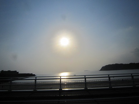右下に薄ぼんやりと、今し方通過してきた江ノ島を見ることができます。