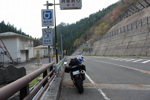 15:37 鳥取県に カラウコ大橋から10kmちょっとバイクを走らせると、2km弱の新戸倉トンネルを通過します。 トンネルを出るといよいよ鳥取県に入りました。 (実際の県境はトンネルの中間部付近) |