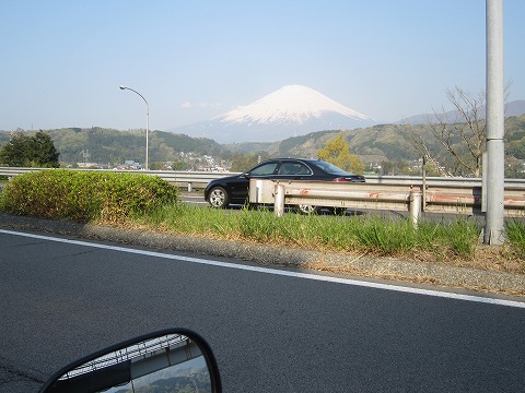 7:35 時間調整 東名高速道路に上がり30分ほど走行し、静岡県の小山町付近までやってきました。 大井松田インターから御殿場の下り線は左ルートと右ルートの2本に分かれます。 大井松田インターにさしかかると掲示板に”左ルート事故 渋滞2km 右ルートに迂回を!”の表示。 多くのクルマが右ルートに迂回していく中、あえて進路を左ルートへ。 「だって、クルマが少なくて走りやすいんだもん!」 (単に横着な性格なだけである) 確かに事故の手前では渋滞していましたが、そこはそれバイクは渋滞知らずですから。 事故地点を通過してガラガラの道を快適に走ろうと思ったら、前方に事故処理を終えたパトカーが1台ペースカーよろしく走っておりました。(残念) なので、駐車帯に停まって、少し霞んだ富士山の写真なぞを撮って時間調整をしている訳です。(笑) |