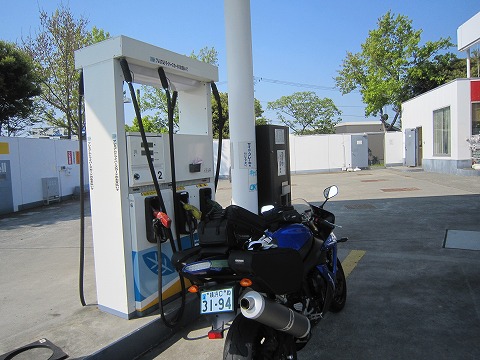 8:53 牧之原で給油 ツーレポのときにはちょくちょく書いていますが、このYZF-R1の足は短いです。 満タンで16リットル。 ちょっと回すとツーリングでもリッター16kmぐらいになることも。 そうすると、満タンで250kmぐらいしか走れません。 自宅を出発して200kmちょっとのところ、東名高速の牧之原サービスエリアにちょうど自分御用達のシェルのスタンドがあります。 ここで今日1回目の給油。 牧之原SAは上下線ともシェルのスタンドなので、東名高速を使って西にツーリングをするときは、ここは給油が必須のサービスエリアだ。 |