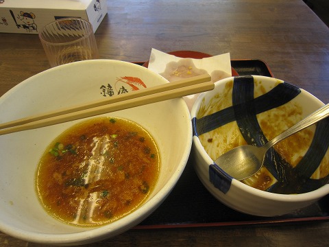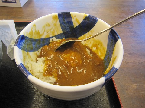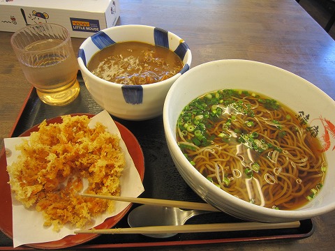 9:10 朝食 そして、手短に朝食。 選んだのは”桜エビのかき揚げそば(¥600)”と”カレー”。 セットじゃありません。 定食、丼ものか¥350以上の麺類を頼んで、+¥200でライスを追加するとカレーとライスが食べ放題。 『いい歳して、食いついてしまいます。 (^_^;) 』 桜エビのかき揚げはサクッとして、なによりも芳ばしい桜エビの香りがたまりませんね。 そばは(見てないけど)たぶん冷凍で、パーキングエリアの食堂としてはは悪くはないね。 カレーはごくごく普通。 カレールーを買ってきて、箱の裏に書いてある調理方法で作ったときの味だ。 でも、ちょっと塩分が多いかな。 |