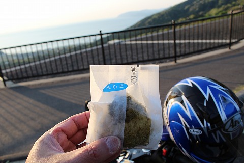 17:53 へしこ 休憩ついでにパーキングの売店をのぞいてみると、”へしこ”のおにぎりが。(\180) へしこはこの辺りの郷土料理で”サバの粕漬け”だそうです。 小腹が空いていたこともあり、さっそくご購入。 「いただきます。」 へしこはサバだそうですが、生臭さは感じられないね。 しょっぱさと、ちょっと酸味があるかな。 美味しくいただきました。 |