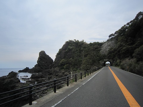 片側1車線対面通行の国道は、海岸線に沿って緩い中速コーナーを直線が結んでいます。