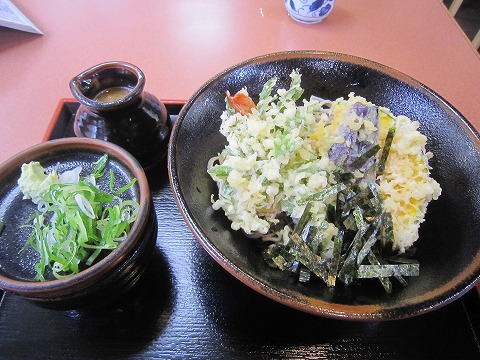 11:35 天おろしそば 注文はお薦めの”天おろしそば”(\1,100) 後で別のところでおやつを食べようと思っているので、あえて普通盛りにしました。(笑) 天ぷらを別に食べたかったので、『別盛りで!』とお願いしたら、そば汁が別に出てきました。 もともと、そばと天ぷらは別盛りで、汁をぶっかけで食べられるよう供されているようです。 が、自分が”別盛りで”と言ったのを汁を別にと思われたみたいで、ご覧の様な盛りになってしまいました。 『あはっ!』 (〜0〜;) まあ、大した問題じゃありません。 「自分はちょっと蕎麦にはうるさいんだぞ」とプリテンドしたい助平心に自嘲。(^_^;) それではさっそく、『いただきます!』 |