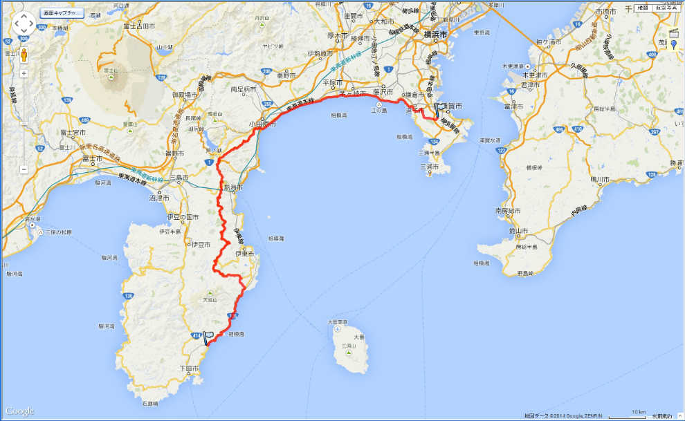 12:22 帰ります 定例になりつつある伊豆ツーリング。 河津での昼食も終わりました。 それでは、帰路に就くことにします。 |