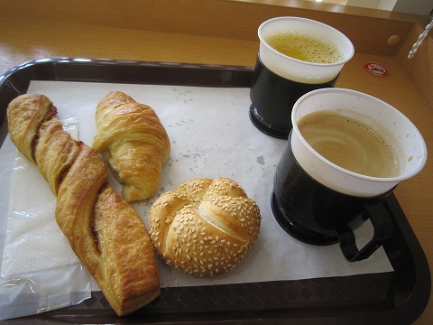 6:33 朝食 朝食は6時半から。 エビスのゲートオープンが7時半からで、ここから40分ほどでエビスまで行けるので、6時半スタートの朝食はちょうどイイです。 まあ、朝食と言っても、セルフサービスのパンが5種類と、ディスペンサーのコーヒーとかジュースだけですが、それで十分。 |