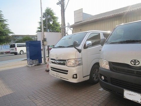 6:48 出発 朝食を食べたので、サーキットに向かいます。 駐車しているクルマは相変わらず仕事車のハイエースが多いですね。 |