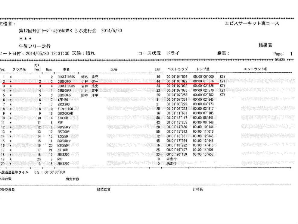 | 2014年5月20日(火) MGMエビスサーキット走行会(2) | |||